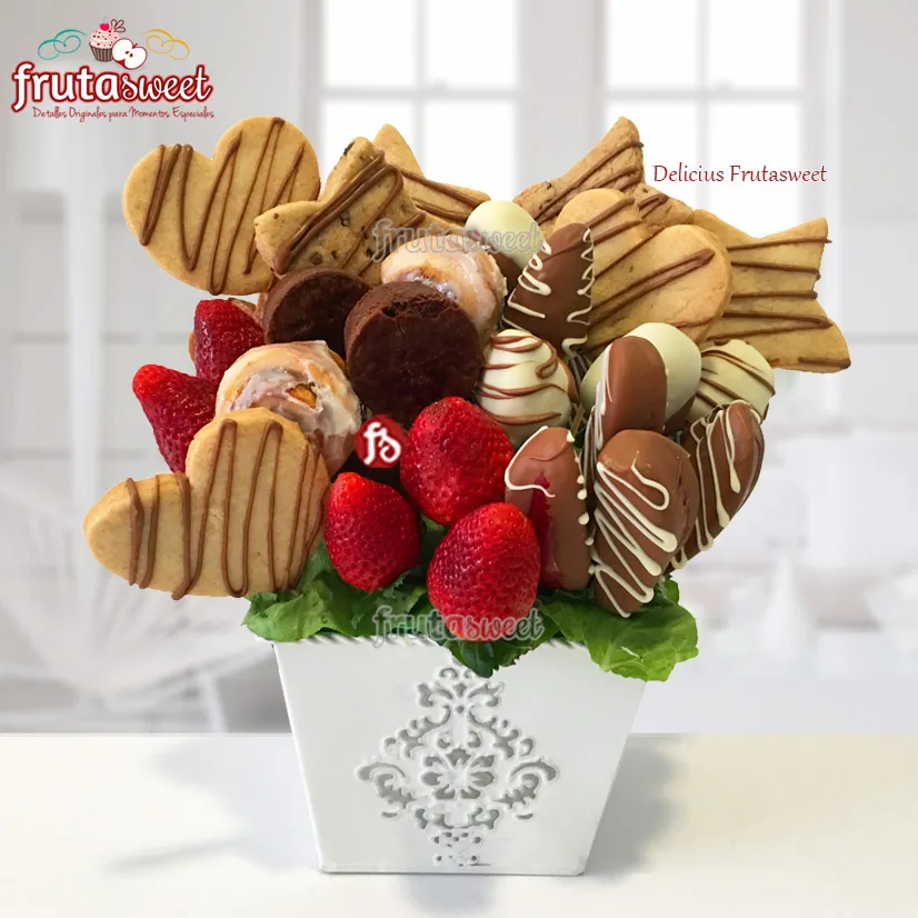 Está presentación tiene el dulce suficiente para que disfrutes al máximo. Es un delicioso postre, y regalo único, todo en un ramo. Pruébalo.... Te aseguramos que no te arrepentirás!